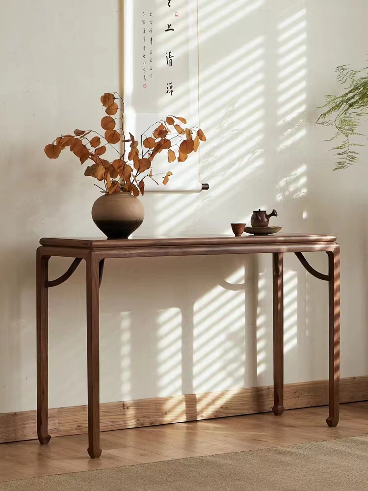 產品風格: 新中式產品型號: tg--982產品主材: 北方老榆木/北美進口FAS級黑胡桃木產品尺寸: L1600mm x W 350mm x H 800mm (可定制)
