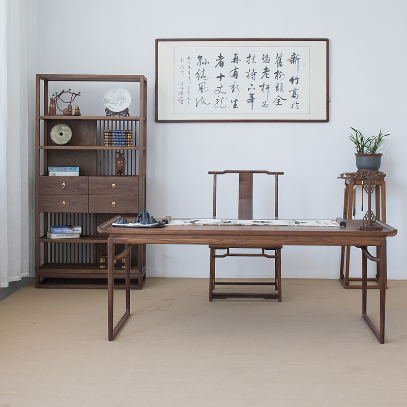 產品風格: 新中式產品型號: SW-003產品主材: 黑胡桃木/老榆木產品尺寸: L1600mm x W 700mm x H 800mm (可定制)