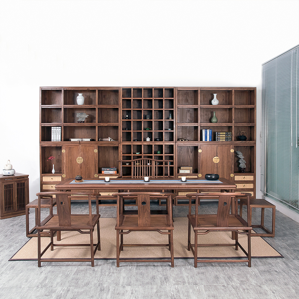 產品風格: 現代中式產品型號: SJ-025產品主材: 黑胡桃木/老榆木產品尺寸: L150cm x W 38cm x H 220cm;L100cm x W 38cm x H 220cm (可定制)