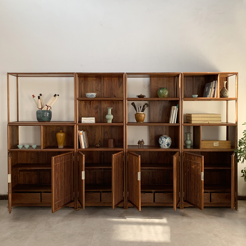 產品風格: 新中式產品型號: HJZSJ--0009產品主材: 北美進口黑胡桃木/北方落梁老榆木產品尺寸: L90cm x W 38cm x H 220cm(可定制)