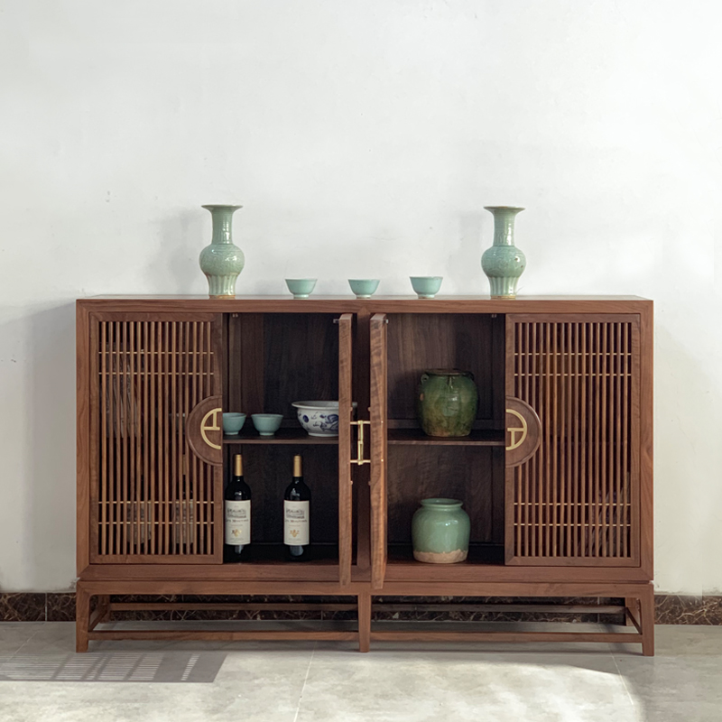 產品風格: 新中式產品型號: HJCBG-002產品主材: 北美黑胡桃木/北方落梁老榆木產品尺寸: L148cm x W 38cm x H 96cm(可定制)