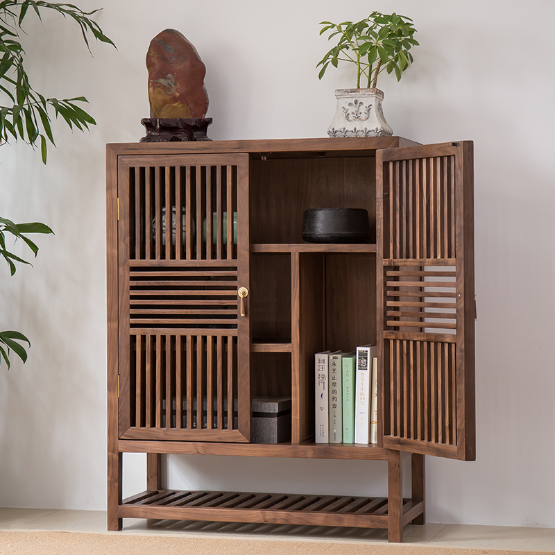 產品風格: 新中式產品型號: HJ-CBG-027產品主材: 黑胡桃木/老榆木產品尺寸: L900mm x W 360mm x H 1080mm (可定制)