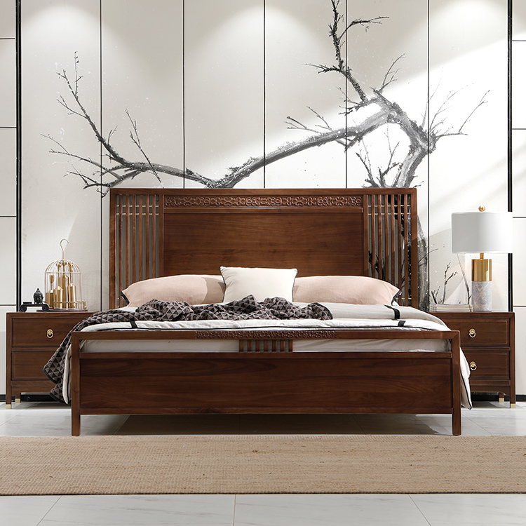 產品風格: 新中式產品型號: C-019產品主材: 北方落梁老榆木/北美進口黑胡桃木產品尺寸: 180X200cm