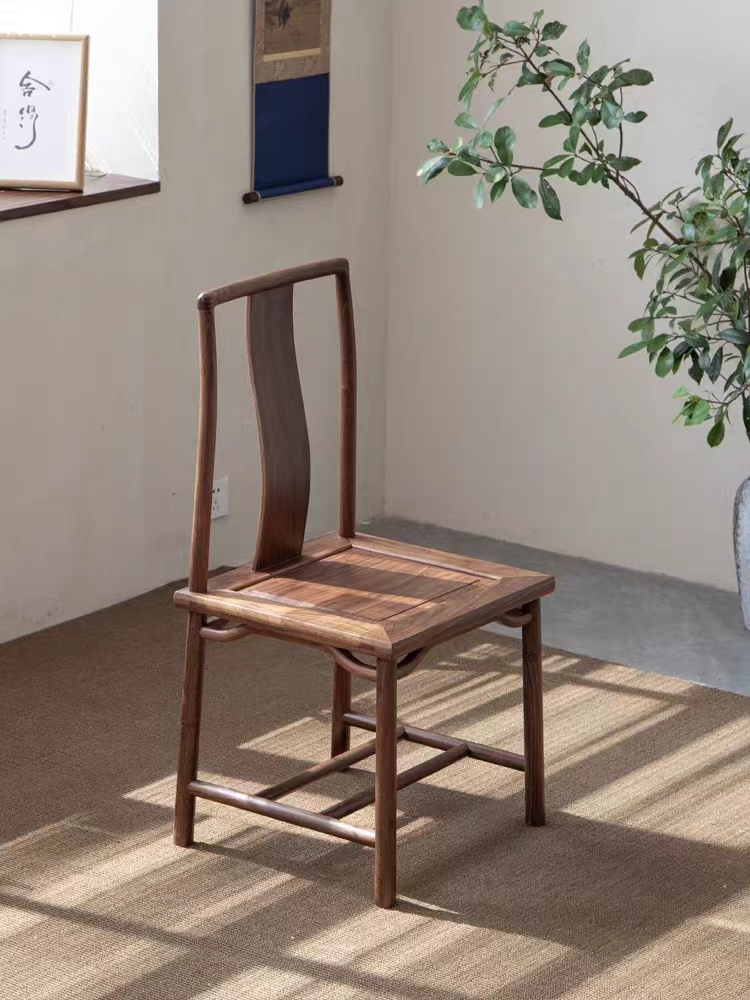 產品風格: 新中式產品型號: cy-7582產品主材: 北方老榆木/北美進口FAS級黑胡桃木產品尺寸: L 460mm x W480mm x H1120mm (坐高 480)