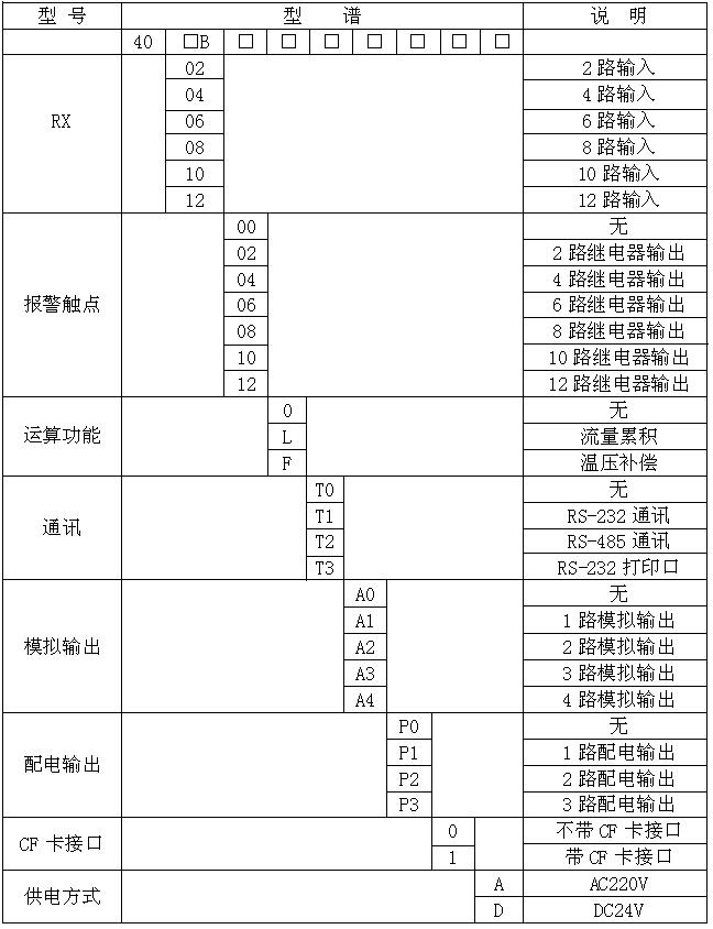 四、產(chǎn)品選型表