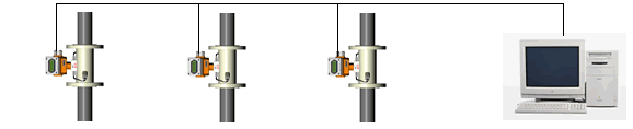 一次表與二次表(或計算機)之間采用RS-485總線通訊,采用普通電纜即可,傳輸距離可達1000米以上,組網(wǎng)十分方便、快捷。這種傳輸方式抗干擾能力強,解決了分體式流量計專用電纜成本高、抗干擾能力差、傳輸距離短等問題。