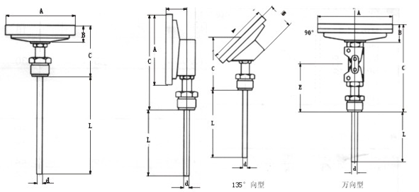 選型須知:請(qǐng)?zhí)峁┬吞?hào)、表盤(pán)直徑、精度等級(jí)、安裝固定形式、測(cè)溫范圍、保護(hù)管材質(zhì)、長(zhǎng)度。選型舉例:萬(wàn)向型雙金屬溫度計(jì),表盤(pán)直徑Φ100,測(cè)溫范圍0~400℃,1.5級(jí),活動(dòng)外螺紋M27×2,長(zhǎng)度450mm WSS-481, 0~400℃,L=450, M27×2,1.5級(jí)