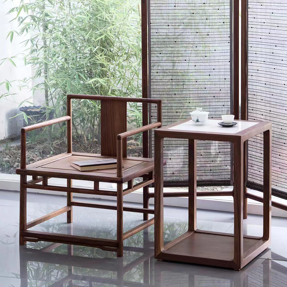 產品風格: 新中式產品型號: GM-006產品主材: 黑胡桃木/老榆木產品尺寸: L620mm x W 520mm x H750mm (坐高400)
