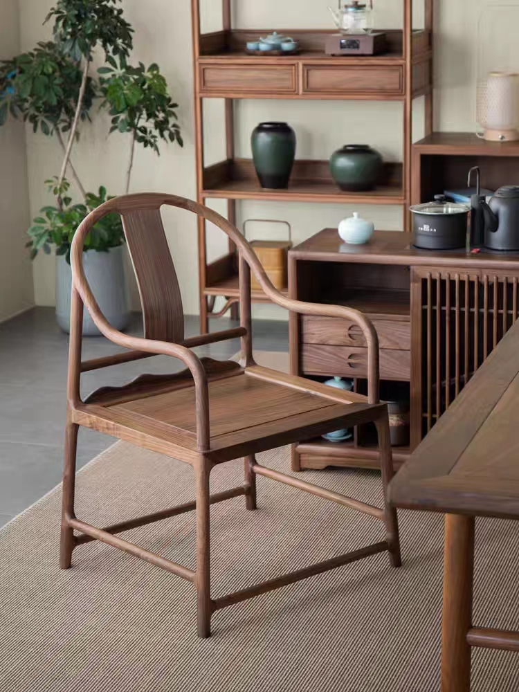 產品風格: 新中式產品型號: xky-12356產品主材: 北方老榆木/北美進口FAS級黑胡桃木產品尺寸: L600mm x W 550mm x H 880mm (坐高 430)