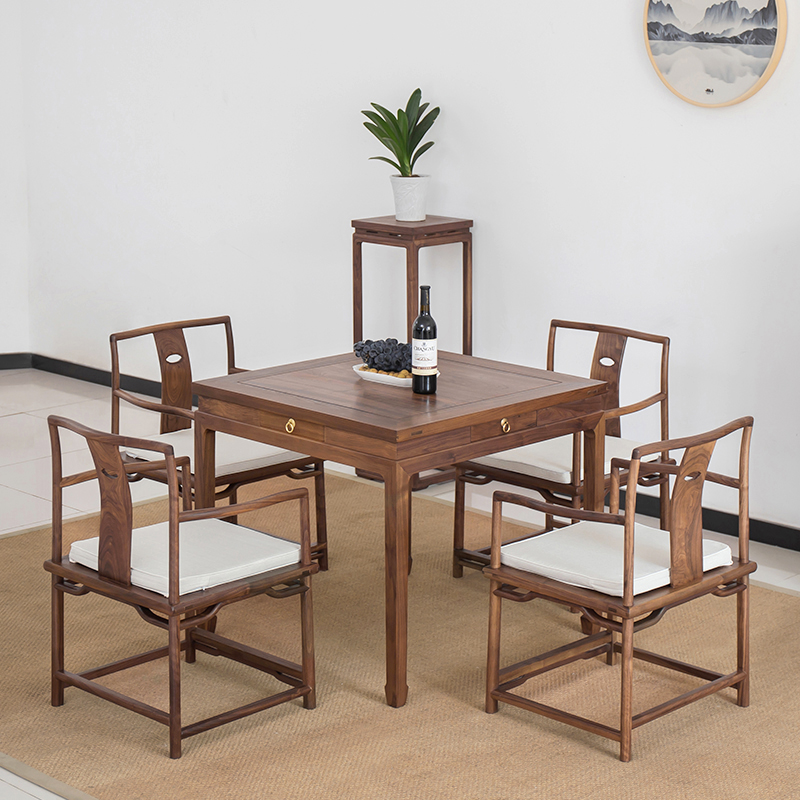 產品風格: 新中式產品型號: HJ-FZ-0012產品主材: 黑胡桃木/老榆木產品尺寸: L900mm x W 900mm x H 750mm (可定制)