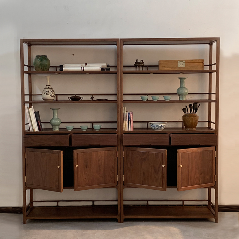 產品風格: 新中式產品型號: HJSJ--008產品主材: 北美進口黑胡桃木/北方落梁老榆木產品尺寸: L100cm x W 38cm x H 198cm(可定制)