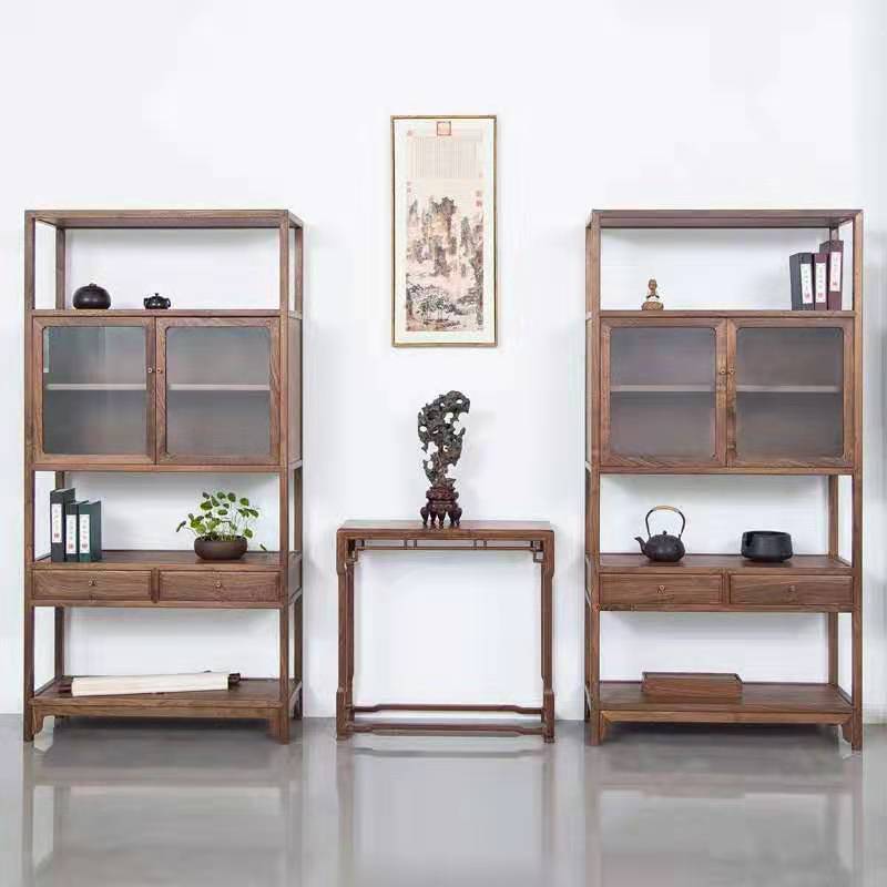 產品風格: 新中式產品型號: HJ-SG-077產品主材: 黑胡桃木/老榆木產品尺寸: L860mm x W380mm x H1900mm (可定制)