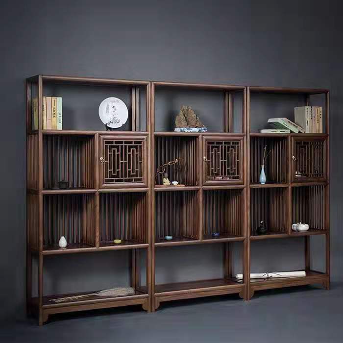 產品風格: 新中式產品型號: HJ-SG-066產品主材: 黑胡桃木/老榆木產品尺寸: L1000mm x W 350mm x H 2000mm (可定制)