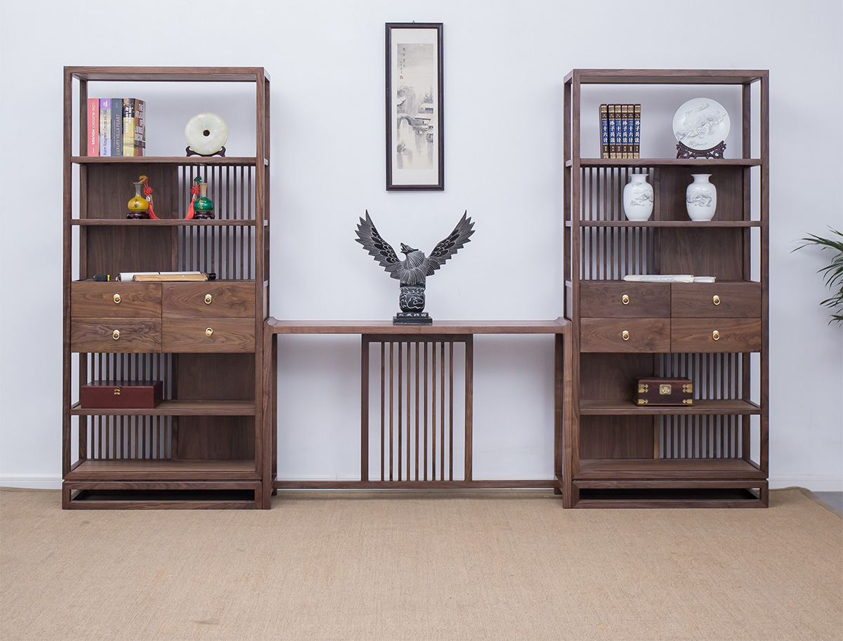 產品風格: 新中式產品型號: sj--20230689產品主材: 北方老榆木/北美進口FAS級黑胡桃木產品尺寸: L900mm x W 350mm x H1980mm (可定制)