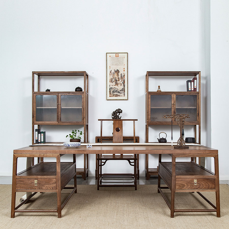 產品風格: 新中式產品型號: HJ-SZ-065產品主材: 黑胡桃木/老榆木產品尺寸: L2000mm x W780mm x H 750mm (可定制)