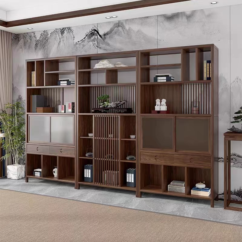產品風格: 新中式產品型號: bgs--20230718產品主材: 北方老榆木/北美進口FAS級黑胡桃木產品尺寸: L1000mm x W 350mm x H2000mm (可定制)
