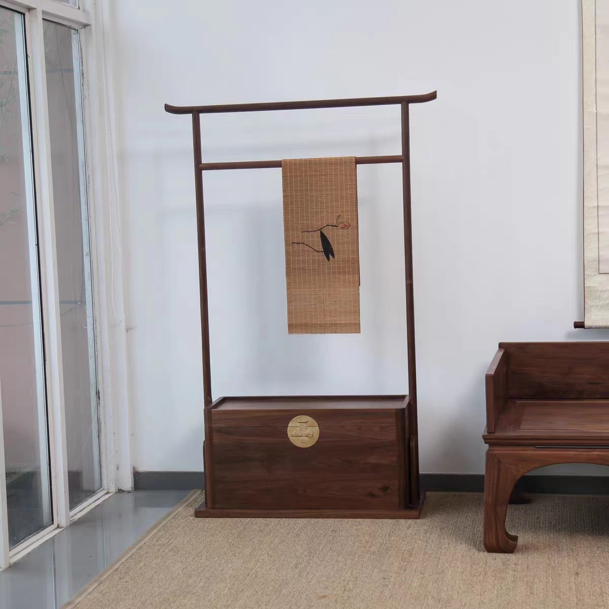 產品風格: 新中式產品型號: ymj--989產品主材: 北方老榆木/北美進口FAS級黑胡桃木產品尺寸: L1100mm x W 400mm x H 1680mm (可定制)